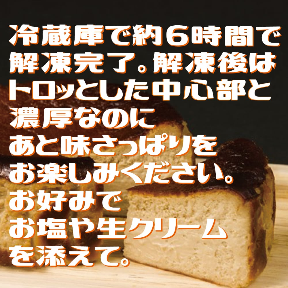 ・約1年を掛けて辿り着いたフランス産のクリームチーズと北海道産の濃厚生クリームに富山県産の新鮮な卵を材料として使用し完成したオリジナルバスクチーズケーキです。